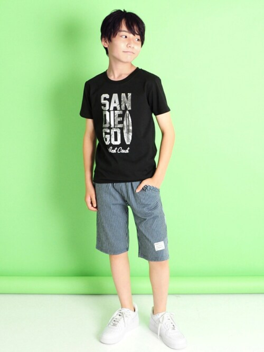 スリムなTシャツにストライプ柄のパンツを合わせることで、縦のラインが強調されてスタイルよく見えます! パッと目を惹く柄パンツは、マンネリする夏コーデのアクセントにピッタリ!