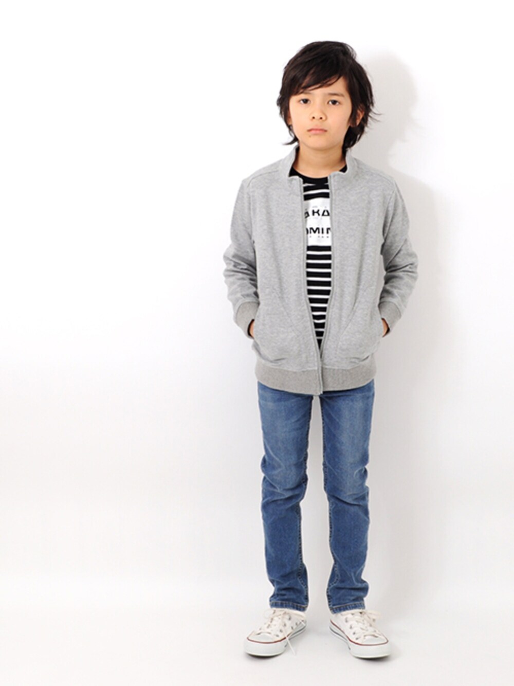 モデル情報/身長133cm/体重26.5kg/130サイズ着用 --- ボーダー&デニムの定番カジュアルに細身グレーのブルゾンでスリムなスタイルに。 ▼新作 [ 本日更新! ] https://glazos.com/items/new_arrivals ↑新作多数入荷しました!デザインロンTや春アウター、ボトムスなどすぐ使えるアイテムばかりです。ぜひチェックしてみてください♪ --- [ 着用アイテム ] ●ストレッチポンチ・スタンドブルゾン [ 110-170cm ] https://glazos.com/item/175806 ●天竺ボーダープリント長袖Tシャツ [ 110-170cm ] https://glazos.com/item/175809 ●ウエストゴム・スキニーデニムパンツ [ 100-170cm ] https://glazos.com/item/175566