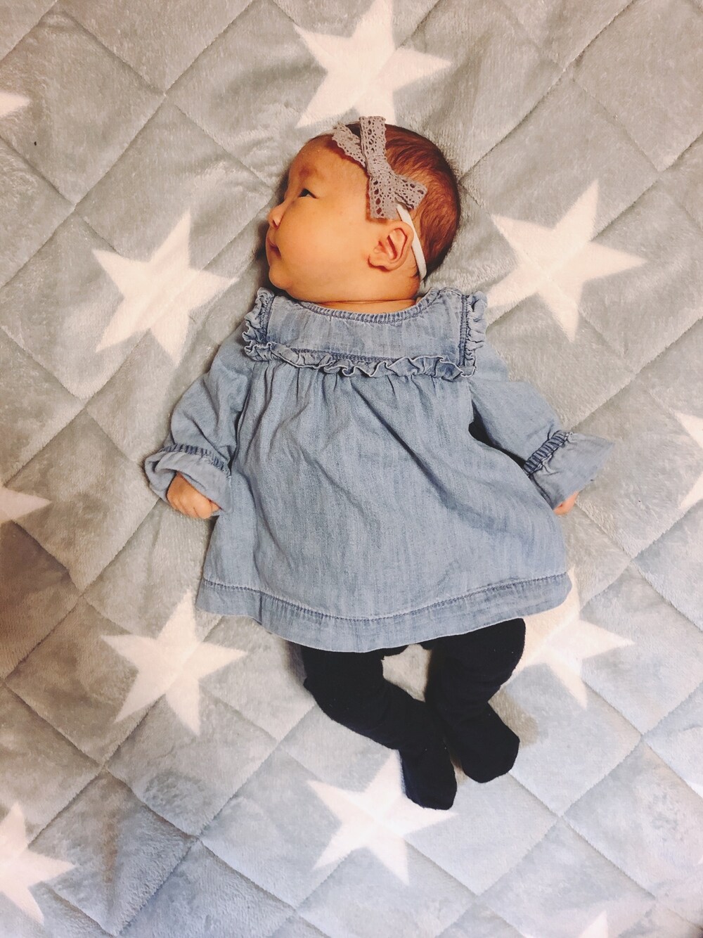 ブルー系のママ&ベビー、ブラック系のベビーシューズ/ベビーソックスを着用したキッズの冬コーディネートの1枚目の写真