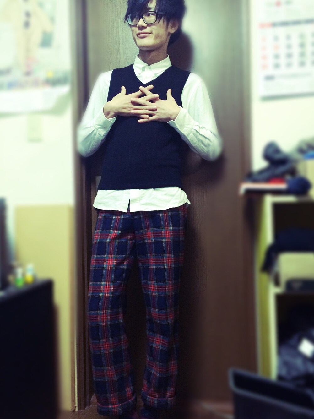 学生みたいな雰囲気出したかったんです…(; ̄ェ ̄) このパンツは古着屋さんで見かけて一目惚れで! 超かわいい(⌒▽⌒)