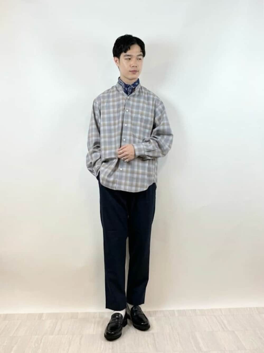 ●身長:173cm /56kg/26.0cm/痩せ型 [サイズ感] シャツ:ゆったり パンツ:もも周りゆとりあり [コーディネートポイント] 画質的に分かりにくいかもしれませんが、これ実は柄×柄コーデ。 柄の幅が全く一緒にならなければごちゃごちゃしすぎません。キレイめスタイルに収めればなおさら。