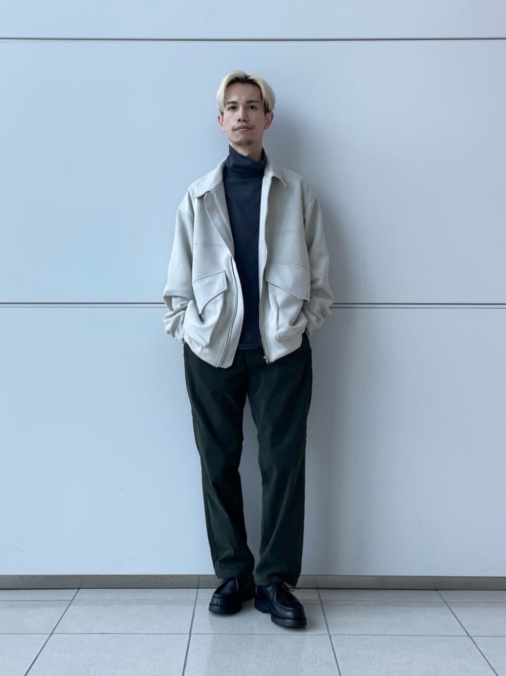 身長:169cm 【コーディネートポイント】 カジュアルなスウィングトップをメインに、ゆったりめのサイズ感でトレンドを意識してスタイリングしました。
