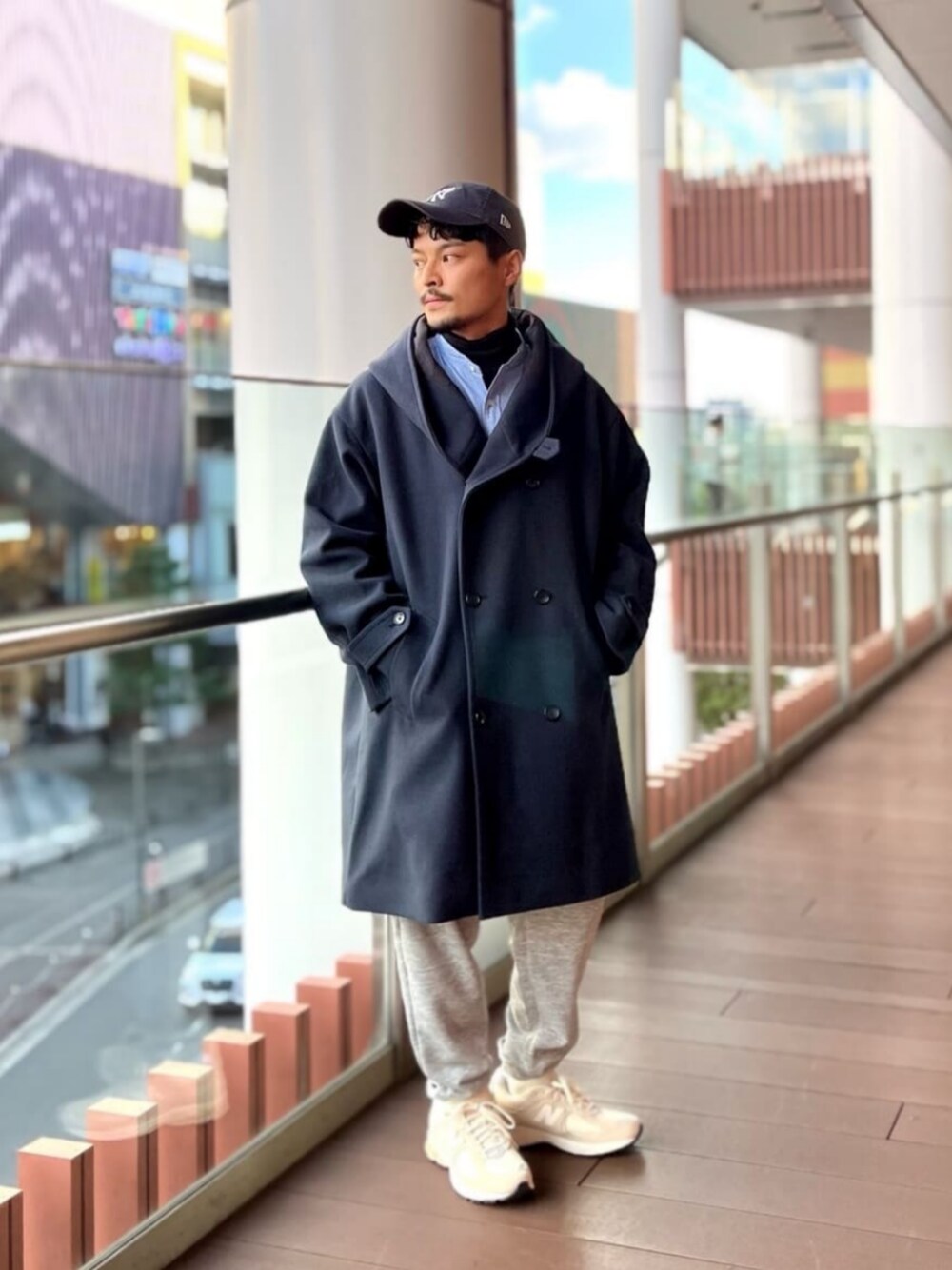 身長:168cm 着こなしによってテイストが様変わりするフードコートをカジュアルなスタイリングで。 スポーツMIXが気分です。