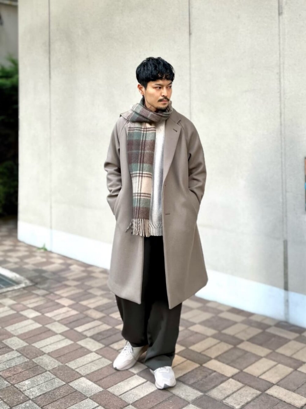 身長:168cm トレンド感あるシルエットのFAbRICAチェスターコートは雰囲気のあるモカを主役に、リラックス感のある着こなしを意識しました。 同系色のマフラーをラフに巻いたのもポイントです。