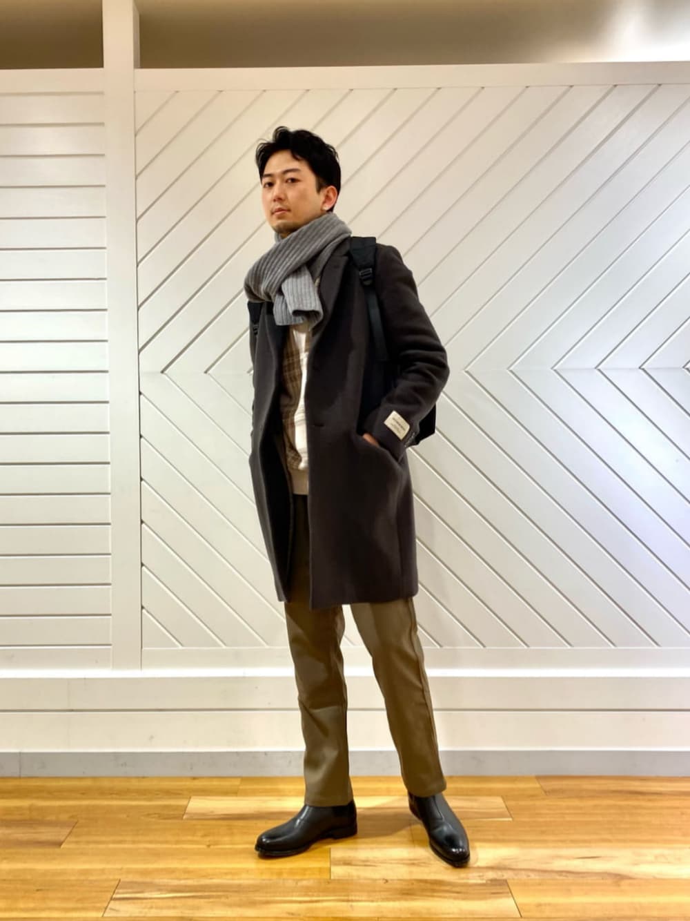 green label relaxing(green label relaxing)のマフラー「ハミルトンラムズウール リブ編み マフラー」を使ったコーディネート