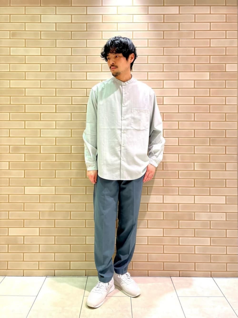 green label relaxing(green label relaxing)のシャツ/ブラウス「TWトロ ストライプ ジャストルーズ バンドカラー シャツ -ウォッシャブル・ストレッチ・防シワ-」を使ったコーディネート