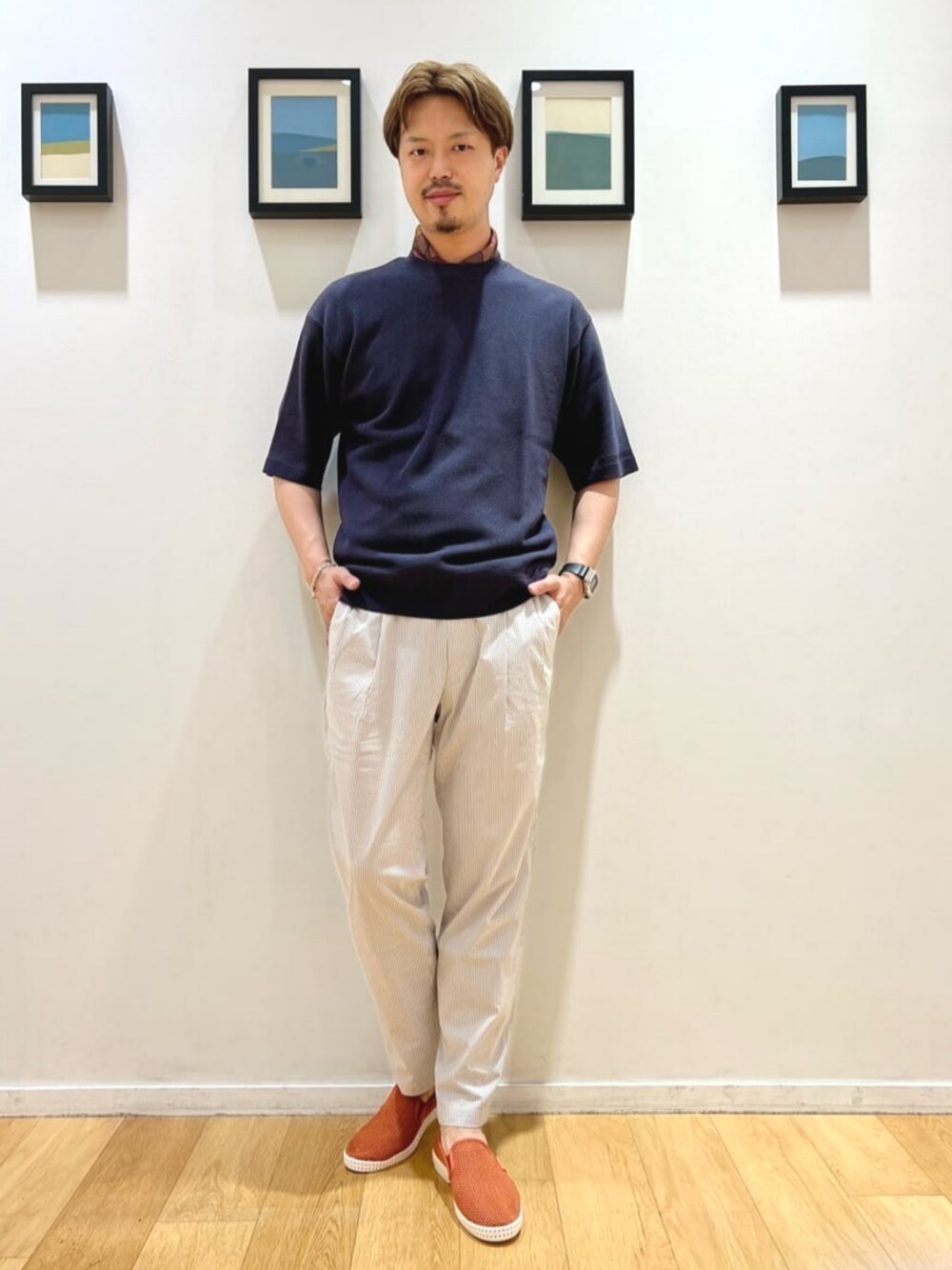 green label relaxing(green label relaxing)のニット/セーター「ハイツイスト コットン アクリル ツイル クルーネック Tシャツ」を使ったコーディネート