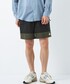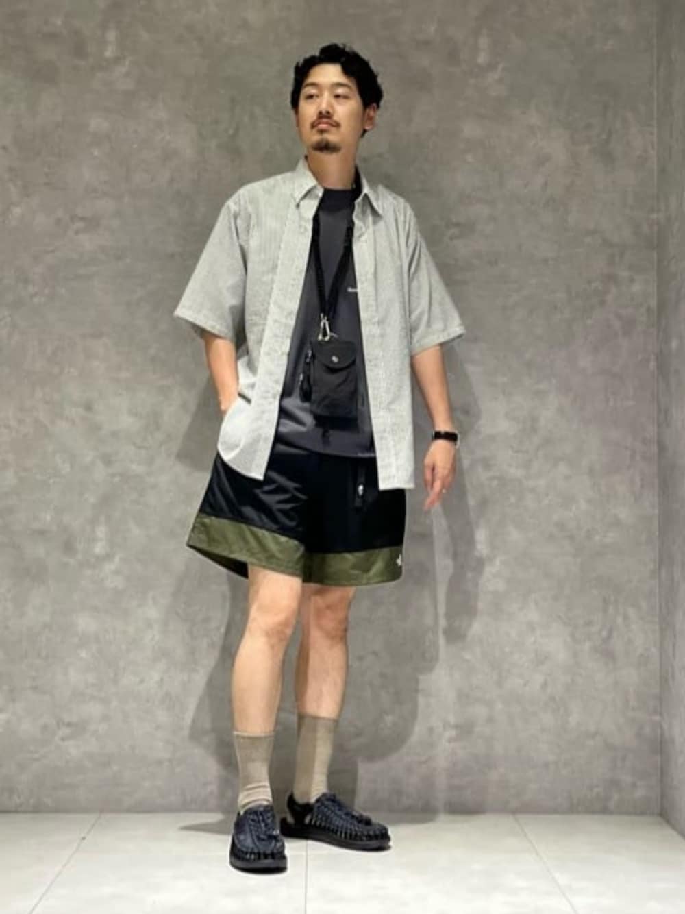 身長:180cm グリーンのストライプとショーツの切り替え部分のカーキを拾いグリーンでまとめてみました!