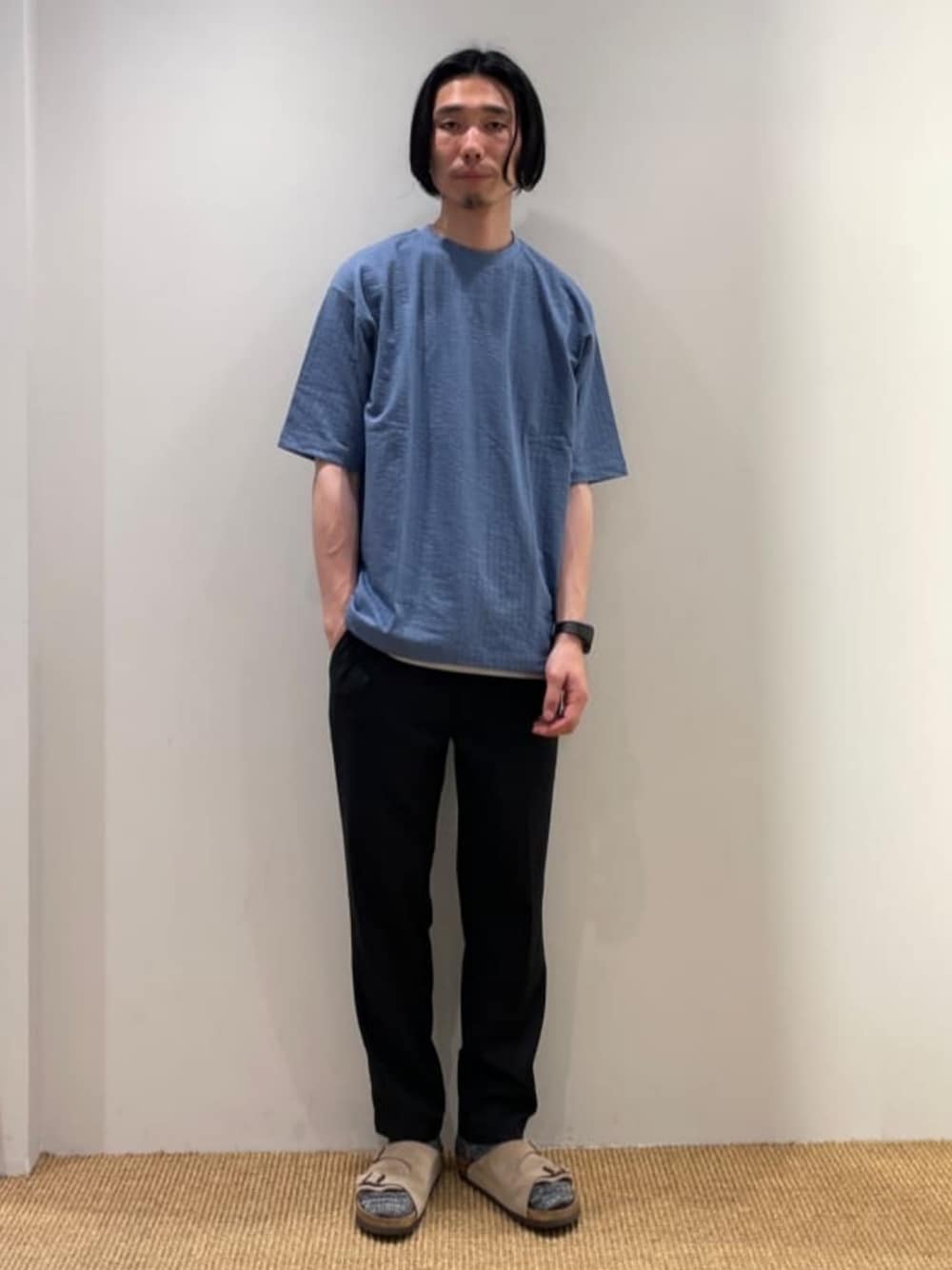 身長:180cm 爽やかなカラーのカットソーで清涼感を意識しています。