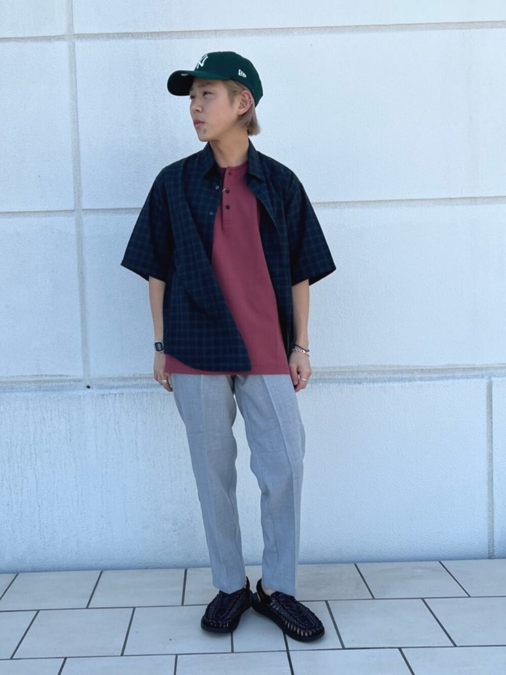 身長:166cm ヘンリーネックのTシャツにチェックシャツを合わせたコーディネートです。 インナーとチェックのラインの色にメリハリがある合わせですが、アクセントになり薄着になりやすいこれからの時期にぜひ挑戦して頂きたい配色です。