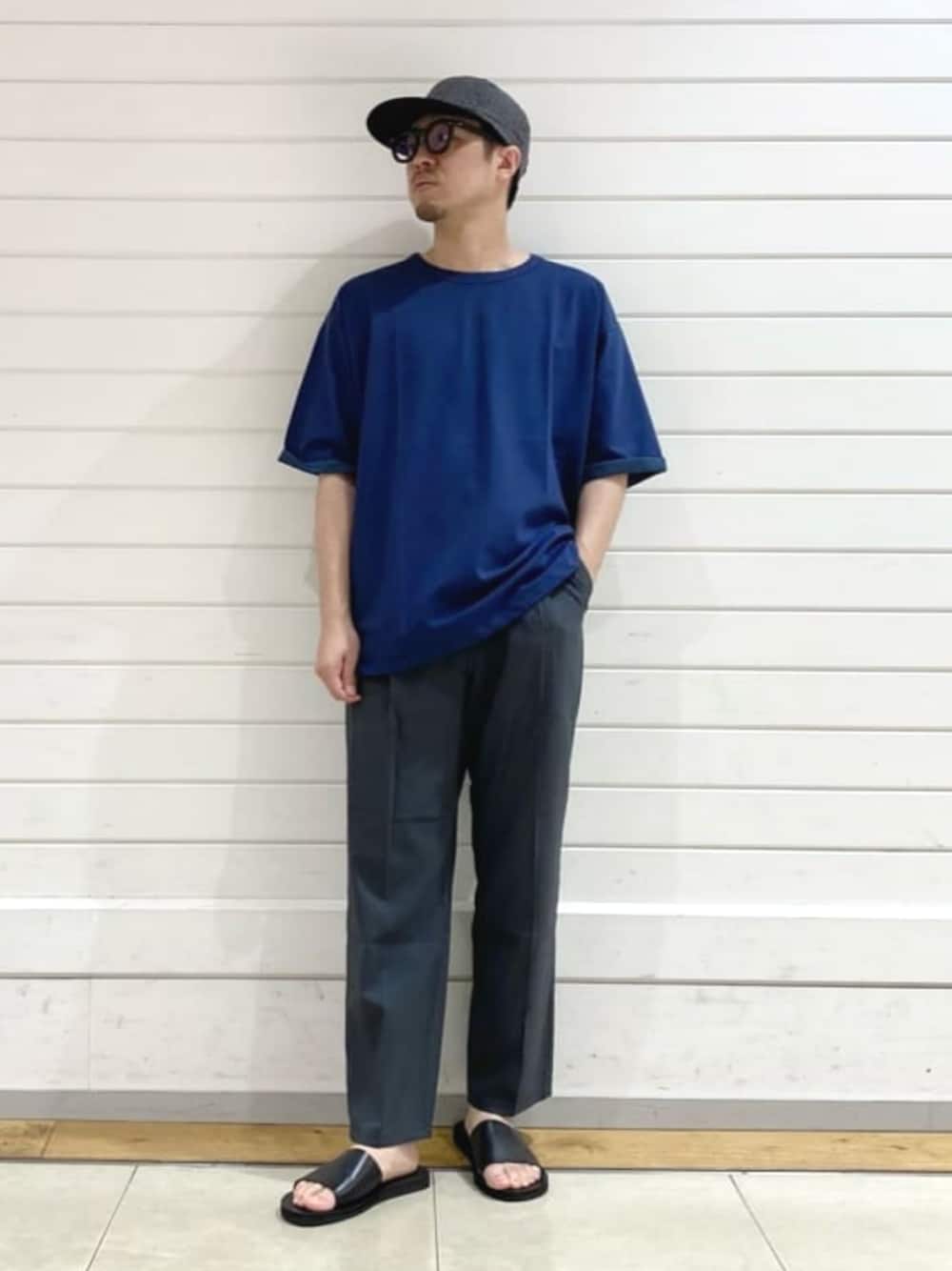 身長:169cm 程よいゆとりのあるアイテムでまとめたリラックススタイルです。サイズ感を意識するだけでシンプルではありますがこなれた印象に仕上げることができます。休日にオススメの大人スタイルです。