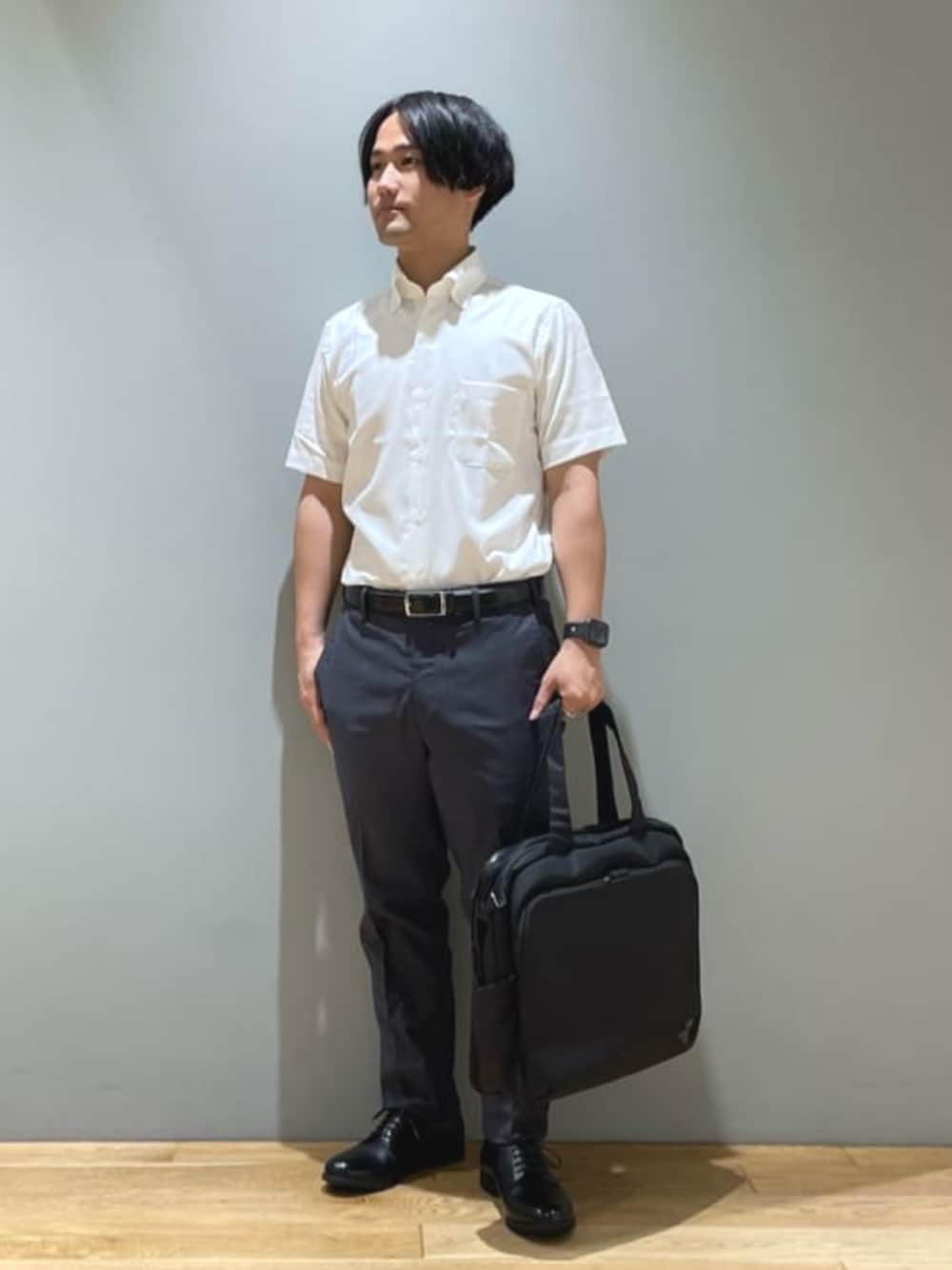 身長:164cm クールビズを意識して半袖シャツのノーネクタイでコーディネートしました。シャツはCOMFYシリーズなので接触冷感性がありおススメです。