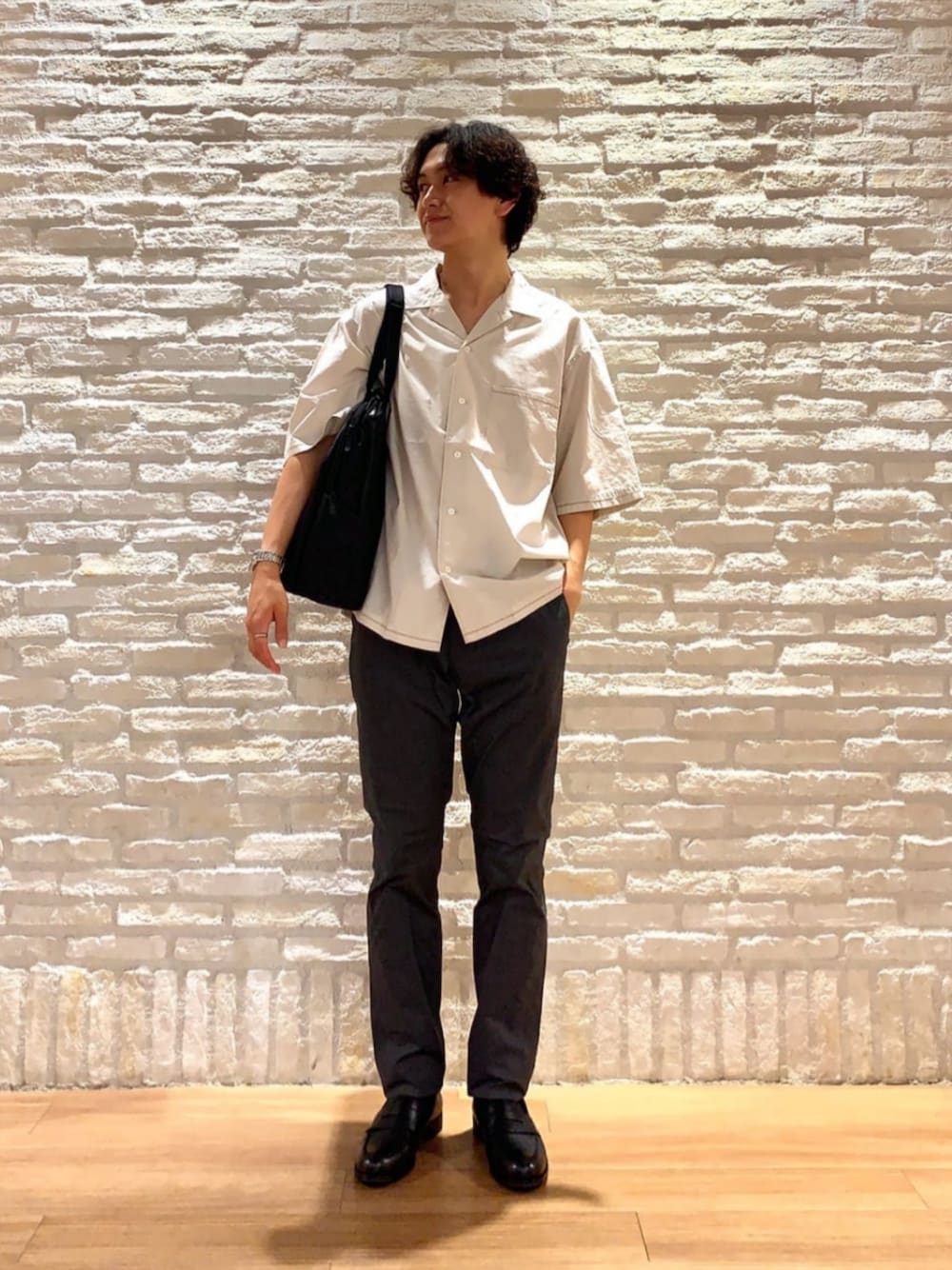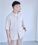 身長:180cm カジュアルなハリのあるシャツに、キレイめなグレーのチノパンツを合わせてバランスを取りました!