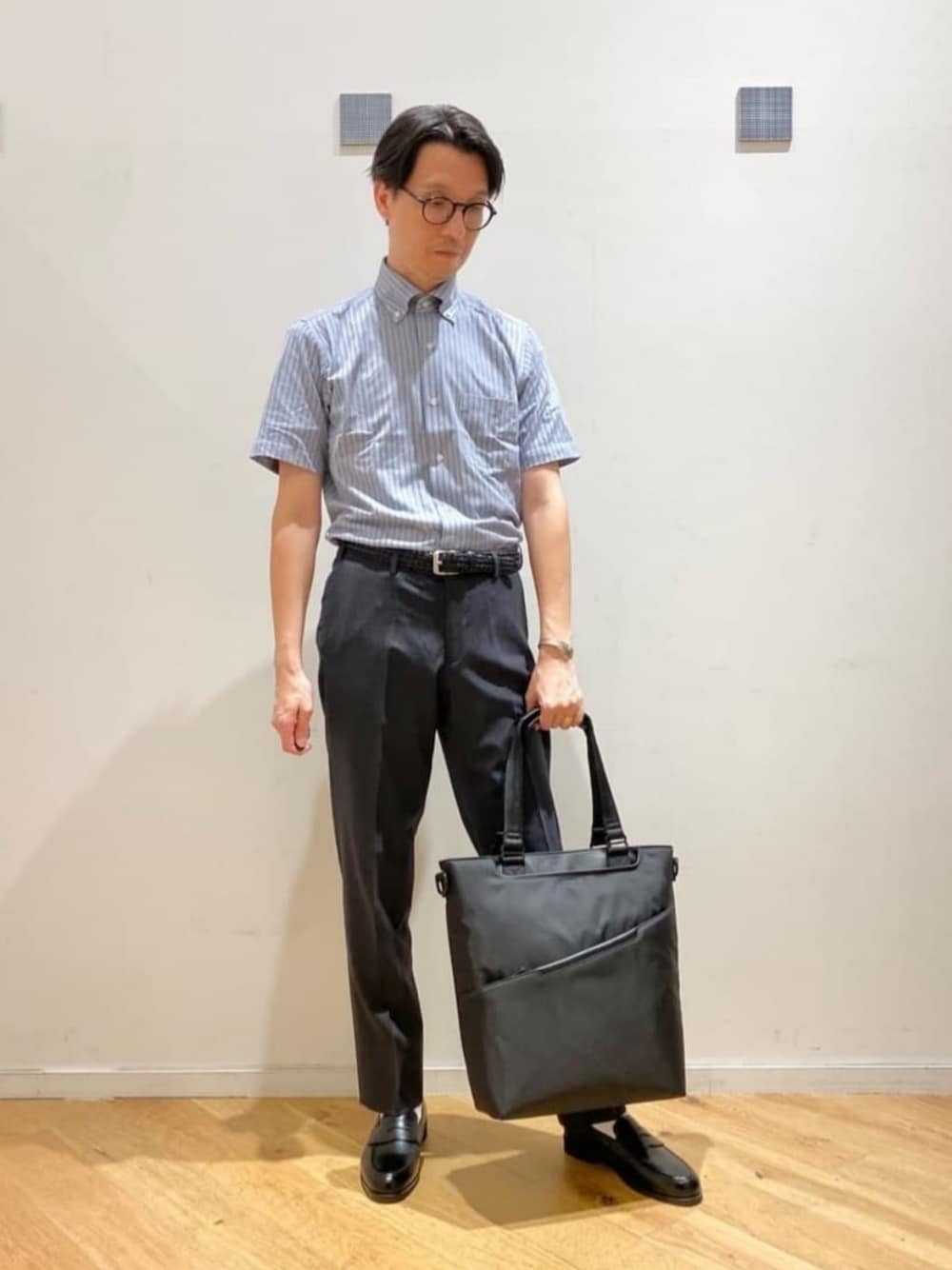 身長:176cm 清涼感のある、ビジネスコーディネートです。 ジャケットがあれば秋口まで着用可能です。