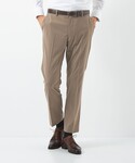 身長:179cm 夏のクールビズスタイルをラッカン素材を使用した生地でコーディネートしました。 シャツのカラーが涼しげな雰囲気に。足元はスニーカーでも相性は◎です。