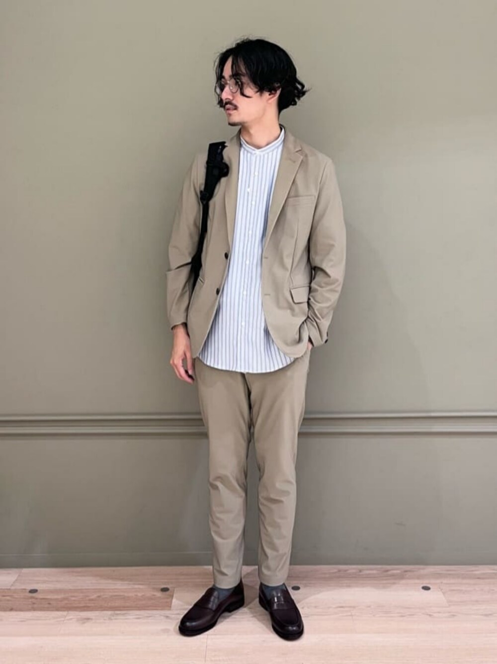 身長:182cm 春夏にオススメな明るめのベージュのセットアップです。 お仕事から、プライベートまで万能に使って頂けます。