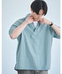 身長:166cm クリーンな印象に見えるグリーンカラーシャツにベージュ系のパンツでアースカラーな配色にまとめました。