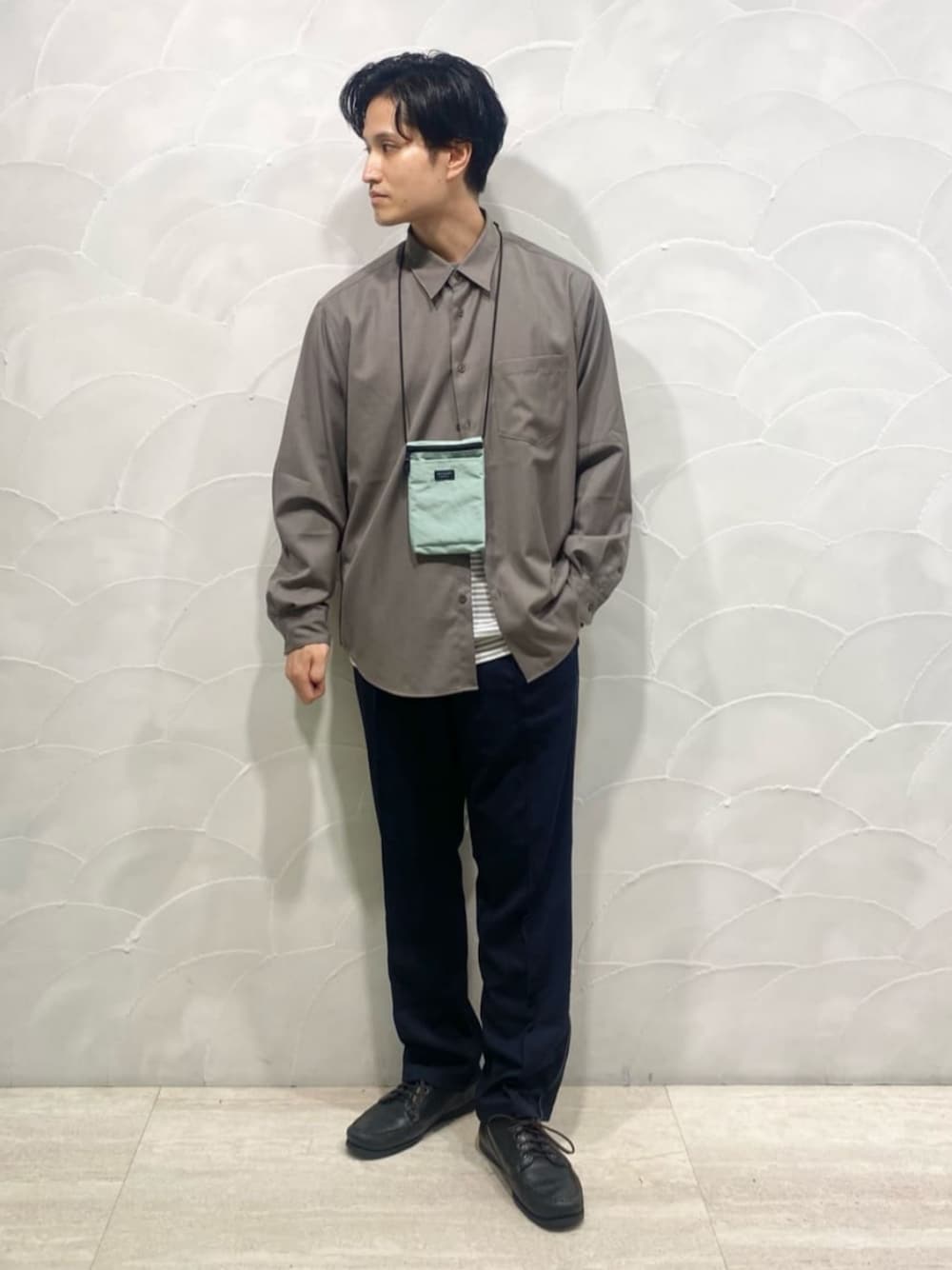 身長:178cm 一枚着シャツでお出かけスタイル。 ツヤがあるシャツは雰囲気抜群。 小物でアクセントを効かせて、お出かけ準備万端。 シンプルなスタイリングにもハマりやすいシャツは着回しバッチリです!
