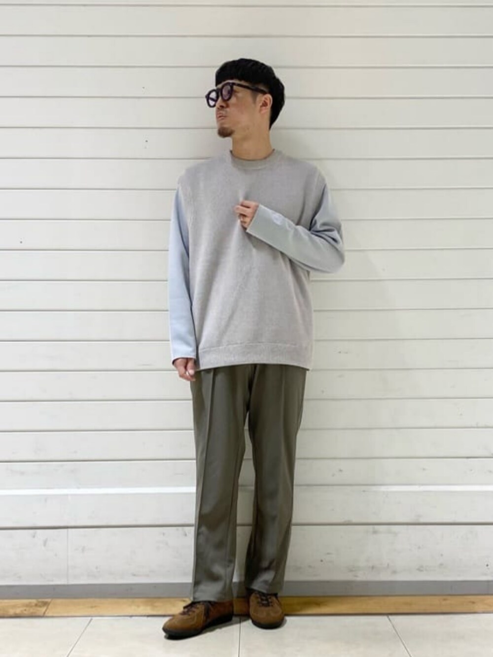 身長:169cm 綺麗めカジュアルスタイル。カットソーにベストを組み合わせるだけでシンプルながらも様になります。パンツはグリーンレーベルオリジナルのトラックパンツで合わせ程よい抜け感を演出しました。