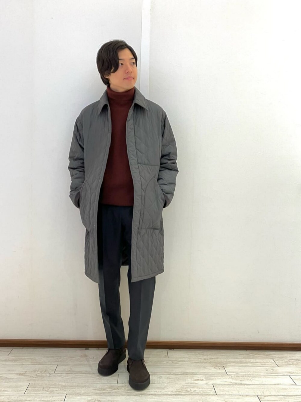 身長:172cm キルティングのアウタージャケットを少しキレイめなテイストで合わせてみました。