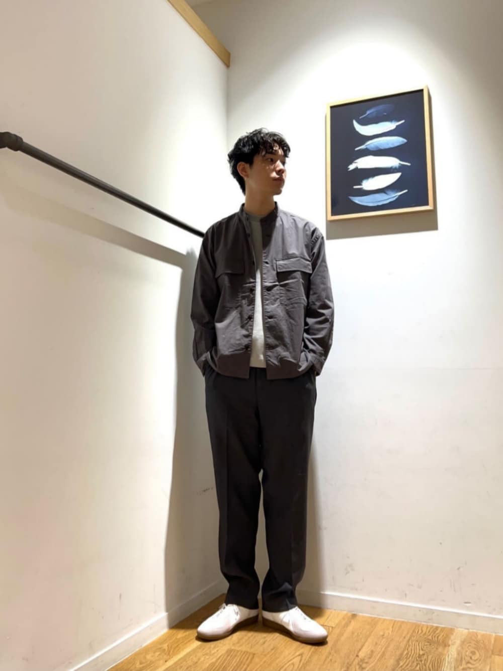 身長:176cm ジャケットは、コットン×ポリウレタンを使用したサテン生地。 マットな質感と膨らみが特徴です。 ボトムスは、ポリエステルを使用したメランジツイル生地。 ストレッチ、防シワの機能付きも嬉しいポイントです。