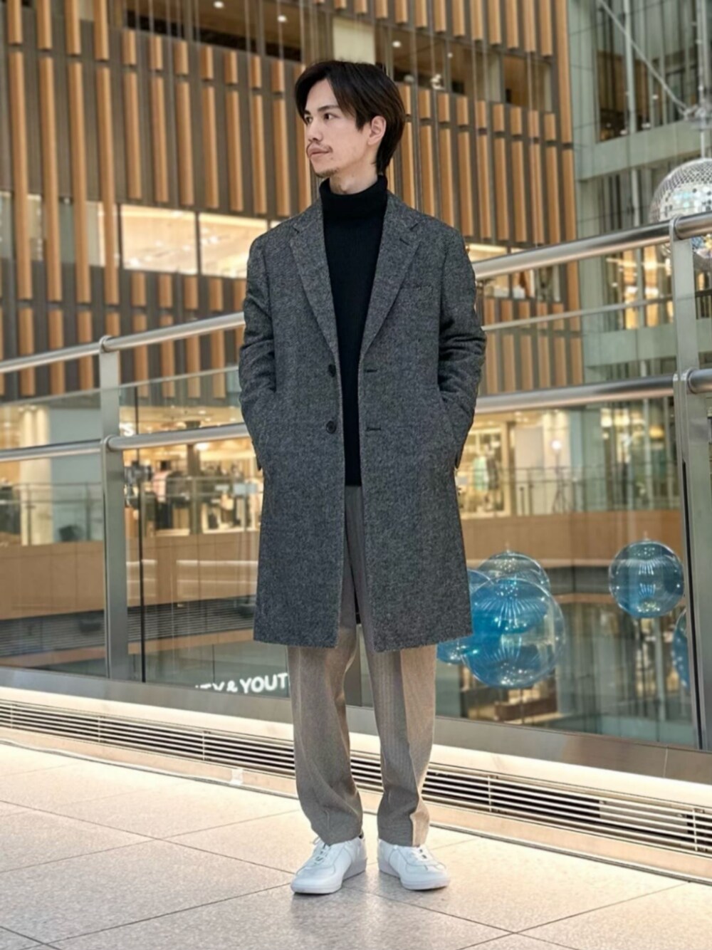 身長:169cm インナーにタートルネックニットを合わせ、大人な印象を作りました。