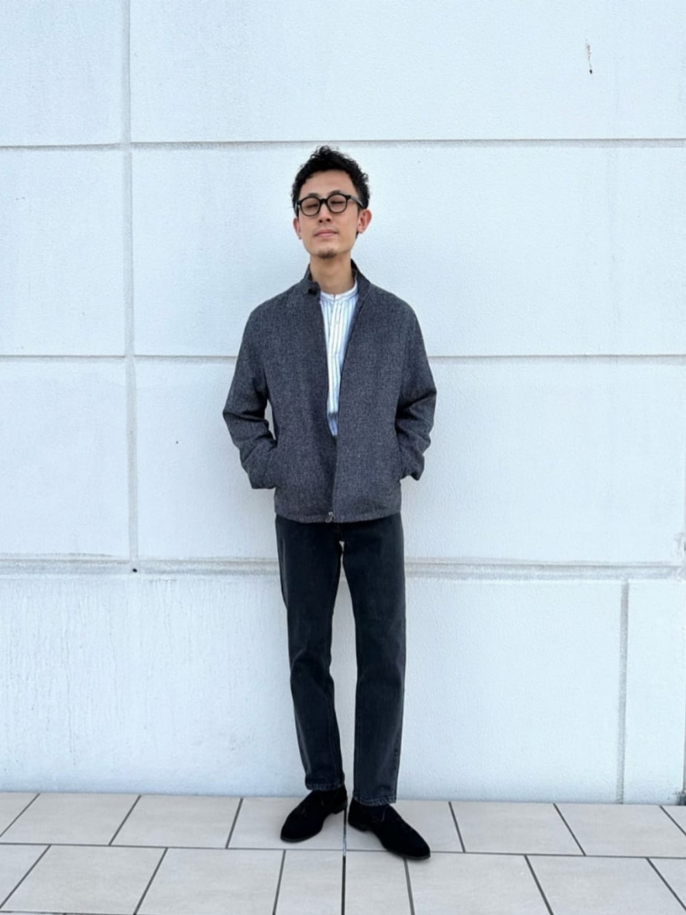 身長:174cm 個人的に今季オススメなグレートーンでコーディネートいたしました。 短丈のブルゾンは映画やドライブシーン等にもピッタリですね。