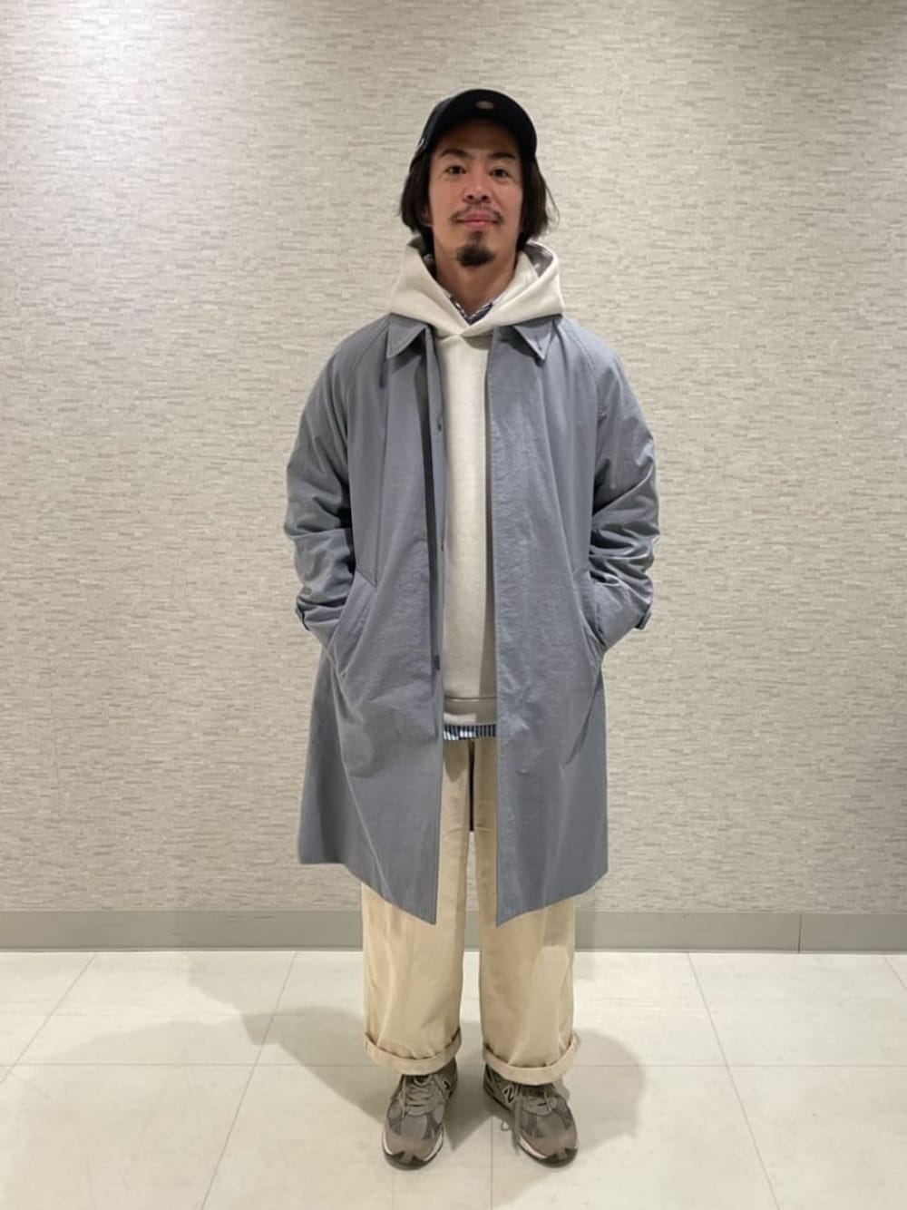 身長:163cm やや青みのかかったグレーにクリーンな色目のパーカーを合わせました。 インナー、ボトムを明るい色をチョイスすると春らしくなりますね。