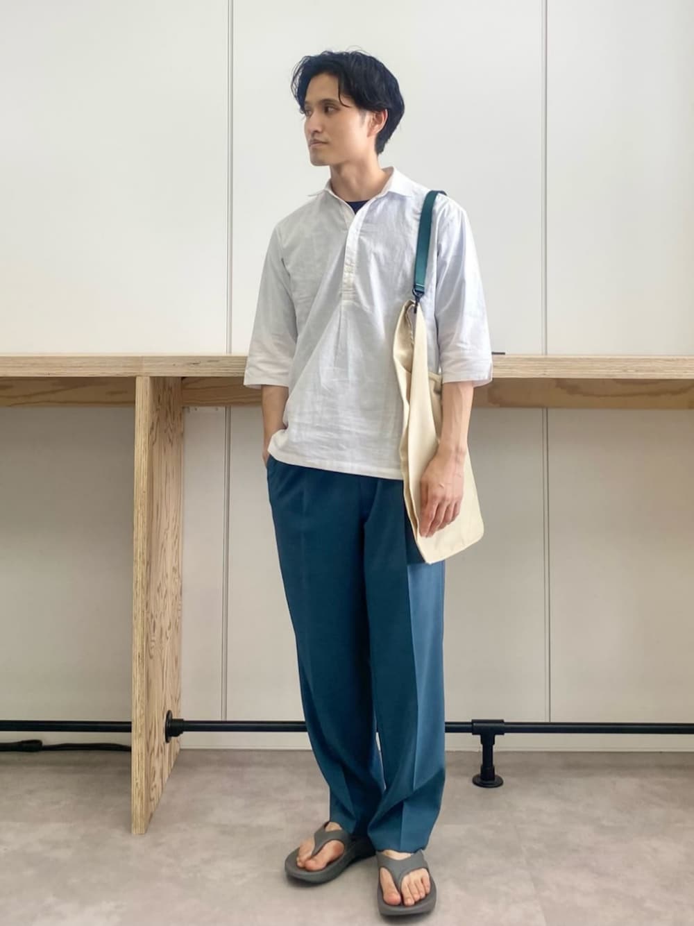 green label relaxing(green label relaxing)のシャツ/ブラウス「【WEB限定】JUSTFIT コットン/麻 プルオーバー 7分袖 シャツ」を使ったコーディネート