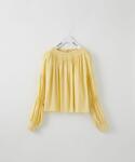 [身長] 157cm [素材感] トップス: 洗いをかけたような風合いのコットンボイル素材。 ボトムス: オーガニックコットンを使用した日本製の11.5オンスのデニム素材。 [サイズ感] トップス:ややゆったり ボトムス:標準 [コーディネートポイント] フェミニンなブラウスにデニムを合わせてカジュアルな着こなし提案。トップスをインにするとギャザーのボリューム感が映えます。足元のボリュームソールシューズもホワイトで明るいトーンにまとめました。