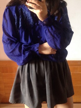 「..のアイテム(Tシャツ/カットソー、ブルー系)」を使った、MINERALwaterMilkさん(レディース)の秋コーディネート