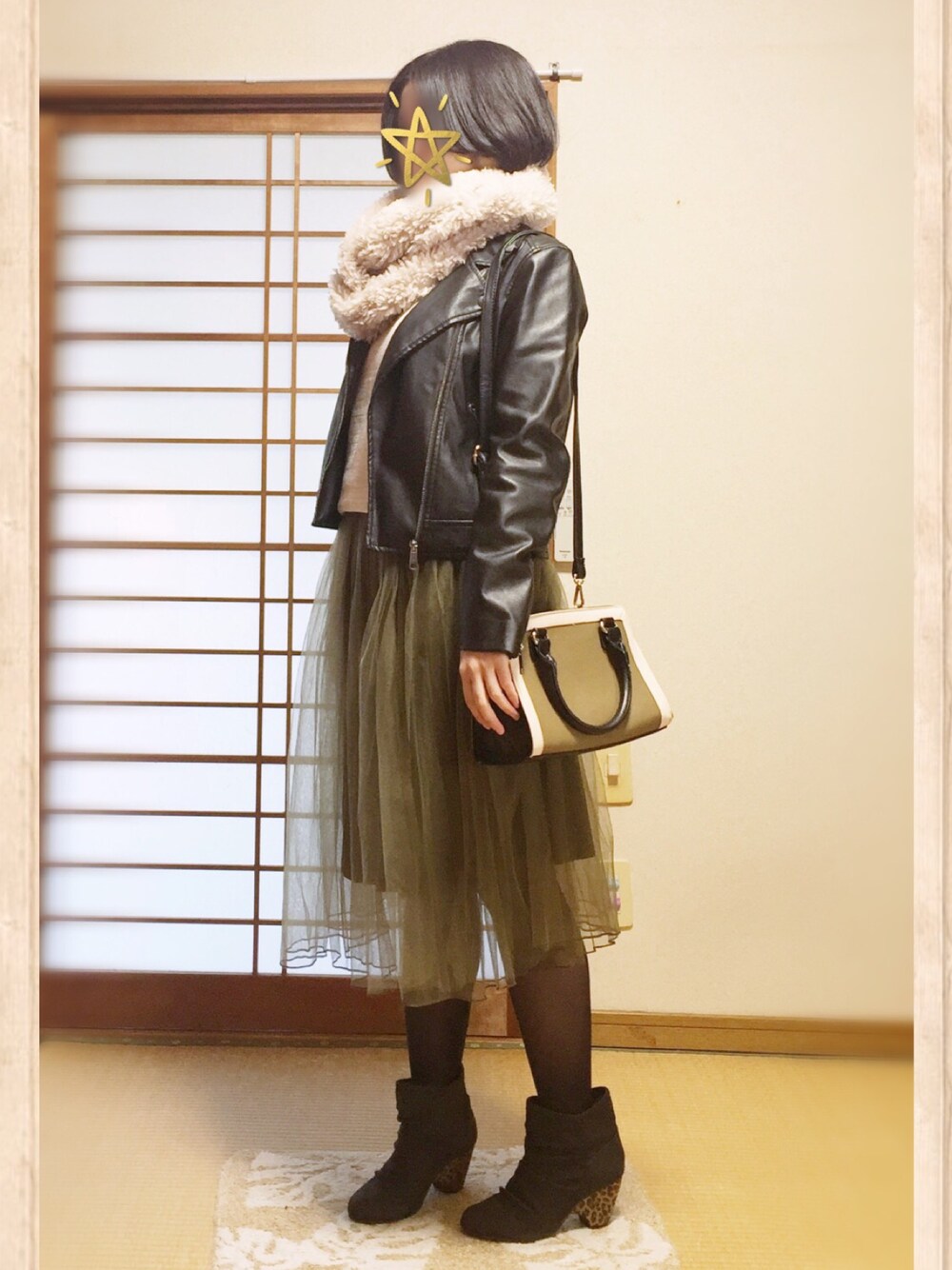 ごまのストール/ショール「モフモフロングスヌード」を使ったコーディネート
