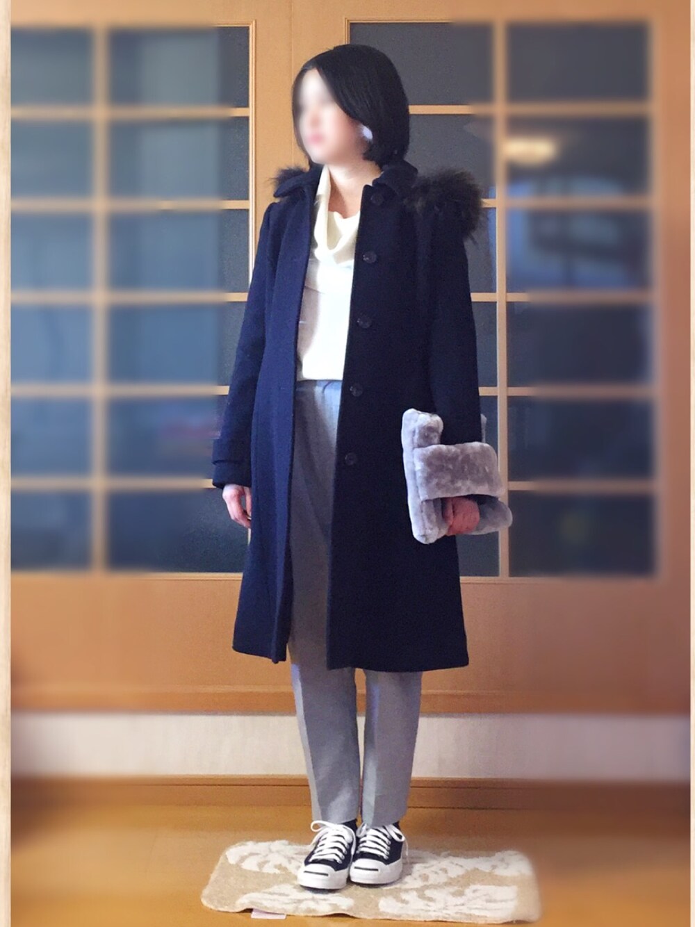 白灰紺のシンプルコーデ。 そろそろ髪を切りたい今日この頃です。
