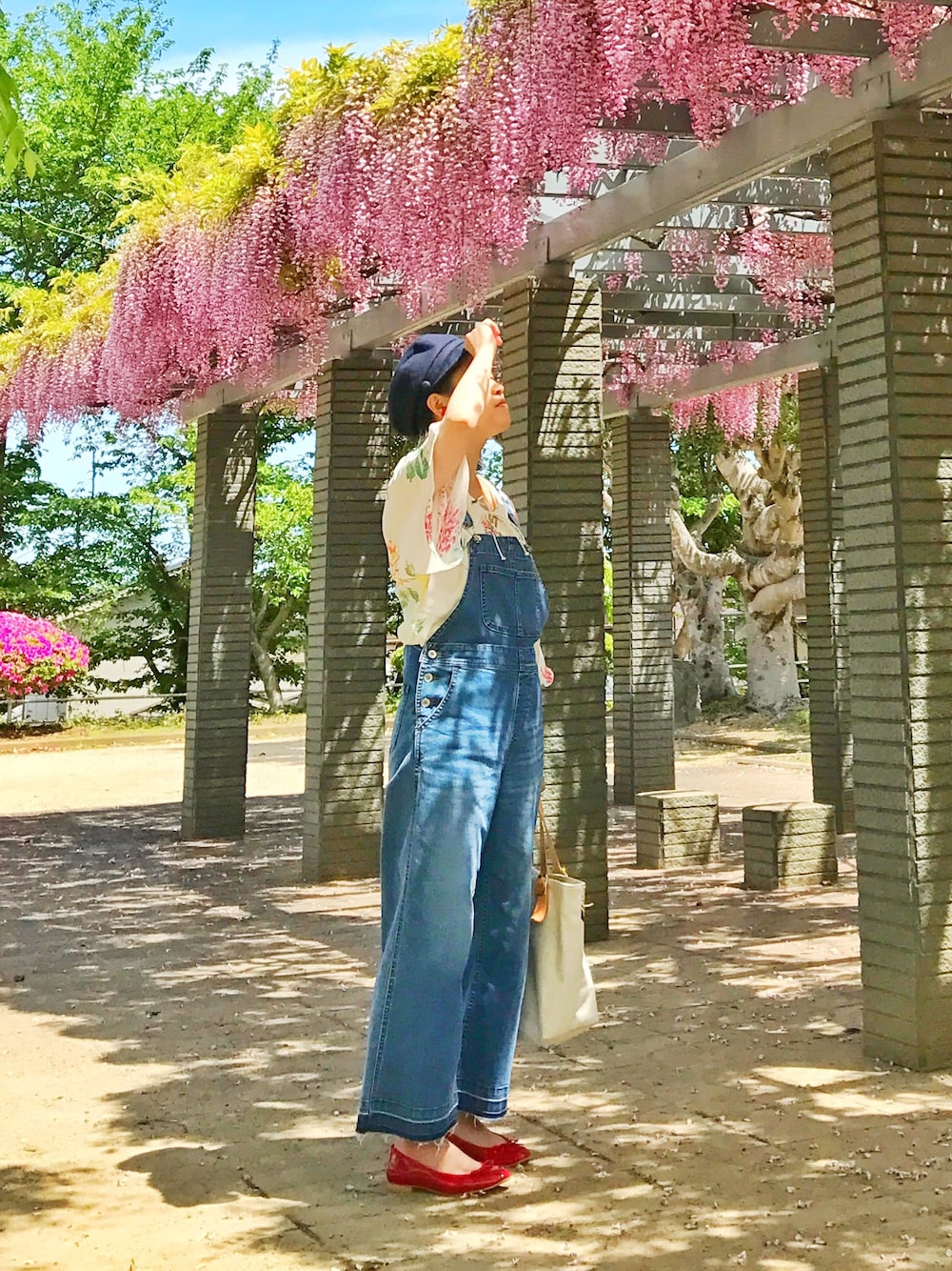 近所の公園の、藤棚の下で📸 普通の藤よりピンクっぽい紫で、可愛いです💕 昨日購入したデニムサロペに、ザラの花柄ブラウス合わせました。 デニムサロペ、ずっと何故か自分には似合わない!って確信してたんですが、いざ着てみたらそんなに違和感ない...かも? なにより楽ちん❗️思った以上に楽ちん‼️ これは良い買いもんやった😊✨ 足元は赤バレエシューズ🍎赤バレエ同盟さっそく入会✨✨ バレエシューズ、やっぱり赤が好きやー😆✨ ザラ、アプリ教えていただいてからめっちゃ見ちゃう🤣大人もやけど、子供服可愛すぎる...❣️ 夏に旅行予定やから、それ用にいくつか目星つけてます👀✨どうしよかなー♬ いつもいいねやお気に入り、フォローありがとうございます😊 コメントすごく嬉しいです❣️