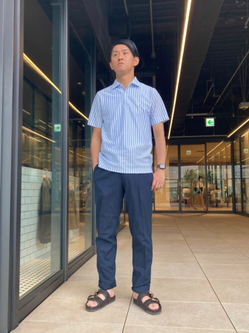 着用サイズ カットソー M パンツ 38 綺麗目なストライプのスキッパーに綺麗目なイージーパンツを合わせて崩し過ぎないリラックススタイルにしました。