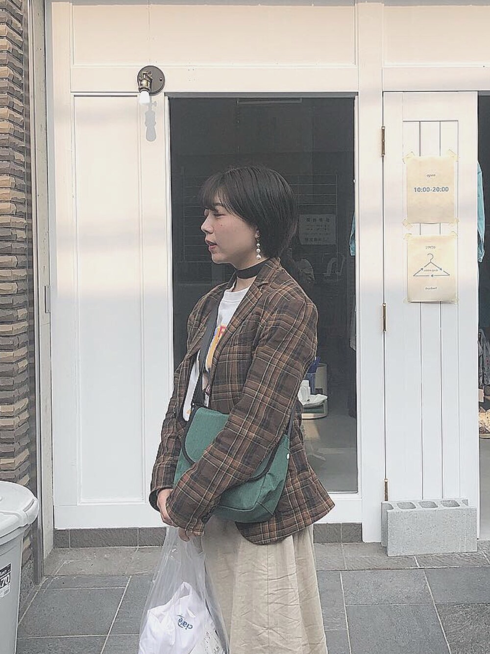 Mina Tujitaniのテーラードジャケット「UR TAILOR コットンフラノチェック JACKET」を使ったコーディネート