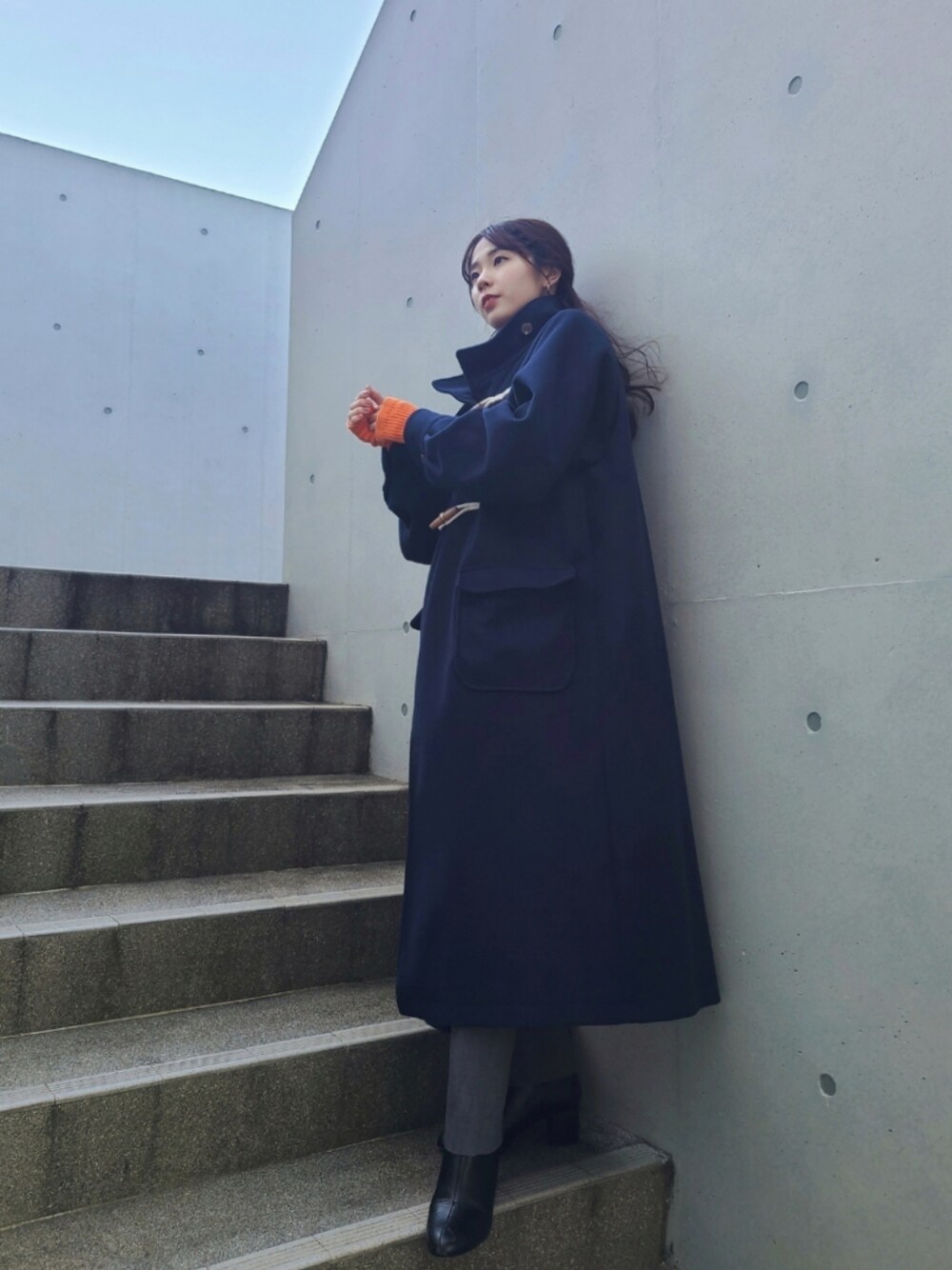 ロング丈のダッフルコート🐻🍊 . . . この日のリップは重ね塗り💄❤️ . . . Instagram⏩️arity_1215