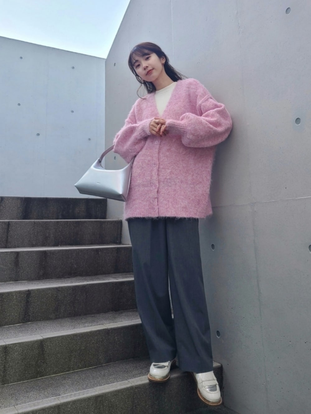 ARINA / 杉本侑菜のカーディガン/ボレロ「シャギーVネックカーディガン」を使ったコーディネート