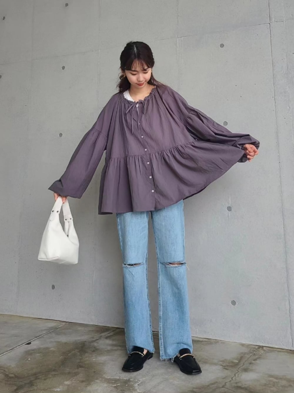 ARINA / 杉本侑菜のデニムパンツ「スリットダメージストレートデニム / サイズ展開あり」を使ったコーディネート
