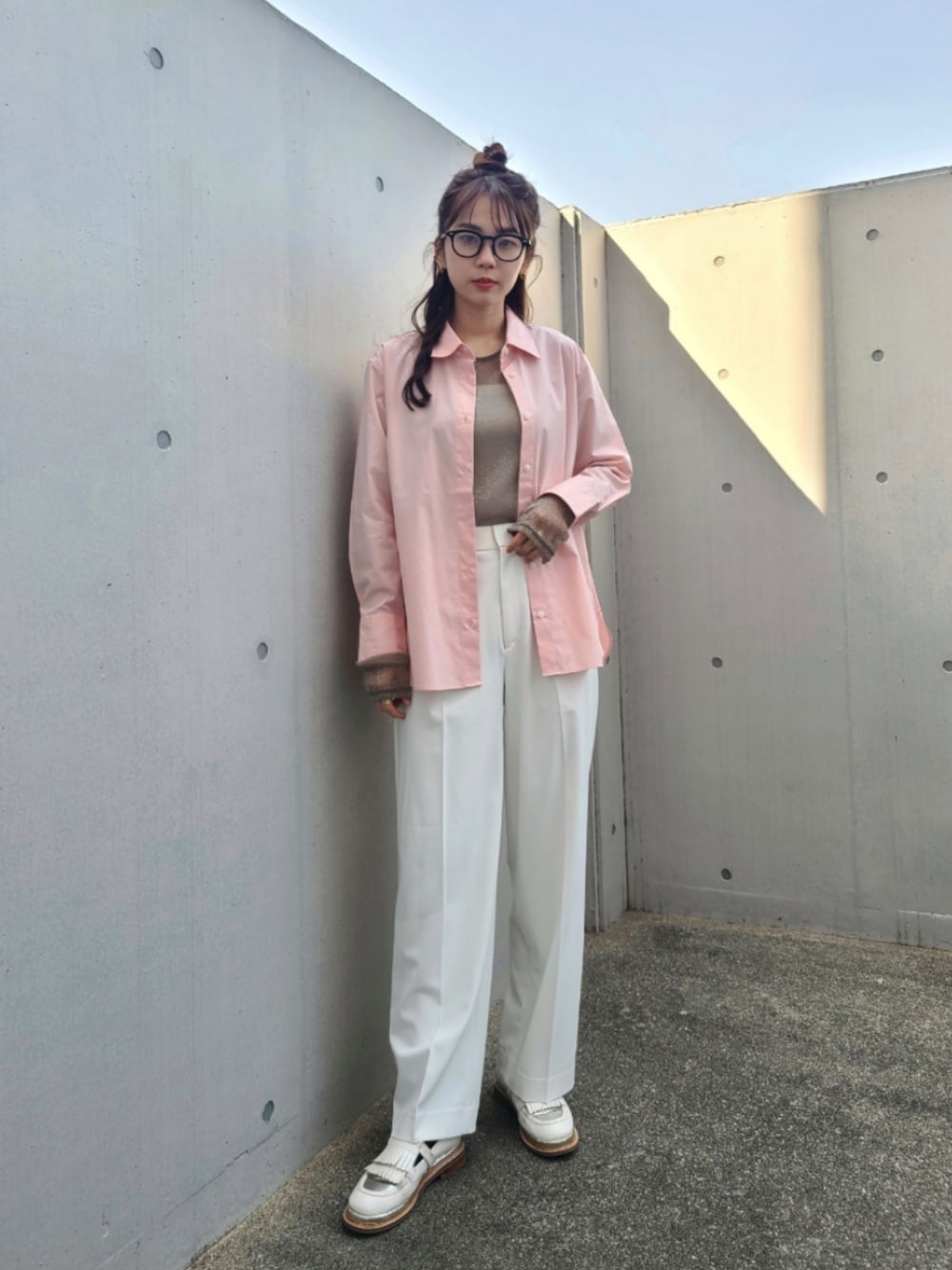 春のレイヤードコーデ🌸 . . シャツ×シアーカットソーのレイヤードコーデ🤫🌼 . . . Instagram⏩️arity_1215
