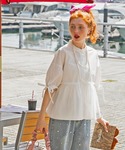 ARINA / 杉本侑菜のシャツ/ブラウス「チュールドッキング ペプラムデザインリボンパフスリーブブラウス」を使ったコーディネート