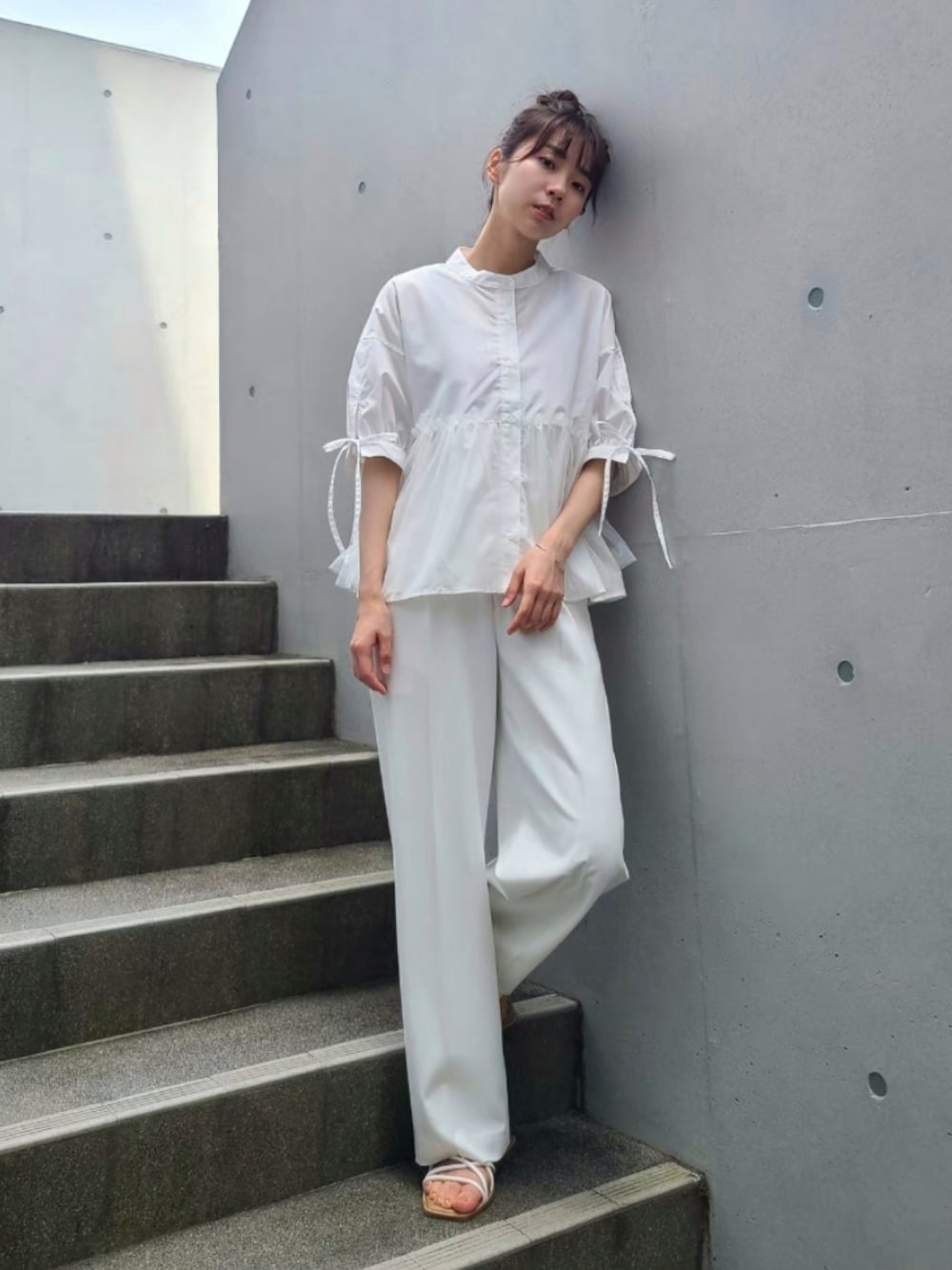 オールホワイトコーデ🤍 . . . 袖口にはリボンがついてます🎀 . . Instagram⏩️arity_1215