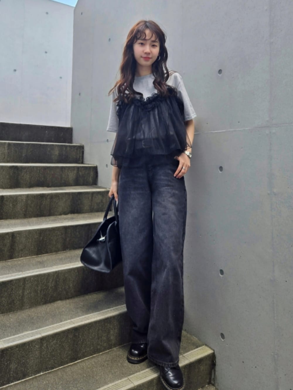 3WAYのドッキングTシャツを着用したコーデ🖤 チュールアイテムもブラックでまとめると 甘辛コーデに🖤 Instagram⏩arity_1215