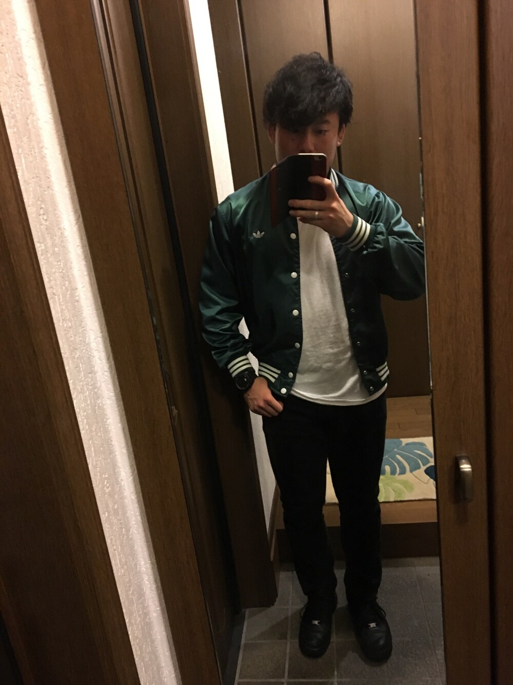 携帯を変えて登録しなおしましたー。 今日は暑いような肌寒いようなよく分からん天気なので、シンプルに白T一枚にadidasのナイロンスタジャンを羽織っときます。 adidasのナイロンスタジャンは古着屋でなんと500円。 貧乏学生なのでこれから更新するであろう服も安いものが多いかと…(笑) この季節に活躍するとおもうのでなにかオススメの合いそうなインナーをコメントしていただけたらと思いますw