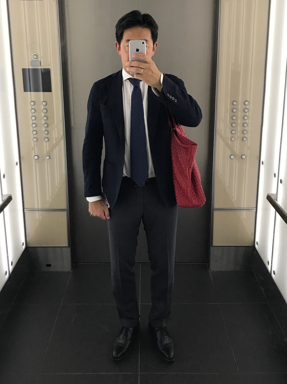 本日はきちんとタイを巻いてみる。丸の内にはビジネスカジュアルと称したスーツ➖ネクタイのダサダサが多数。ノータイであれば、それなりのシャツを着るべし。こんな時代だからこそきちんとタイをするのがマイブーム。とはいえ暑いので、パッカブルジャケットにサマートラベラーで対応してみました。