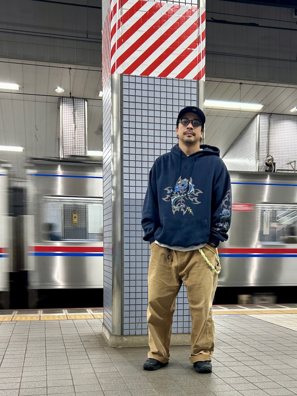 やっとパーカーが着れるくらいの気温になって来たのでまたこいつを引っ張り出して来ました。 デザイン、シルエット共にお気に入りの1着。 パンツもかなり色の抜けて来たカーハートで全身古着コーデです。