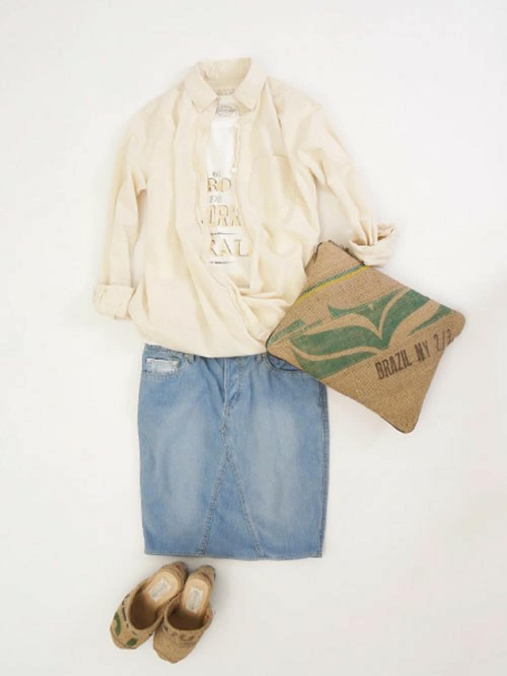 ナチュラル感がカジュアルの中に‘抜け‘をつくります。 ベーシックなのに、ジュートのクラッチとサンダルのヴィンテージ感がとてもおしゃれです。 初夏を元気に過ごせる!コーデです☆☆☆