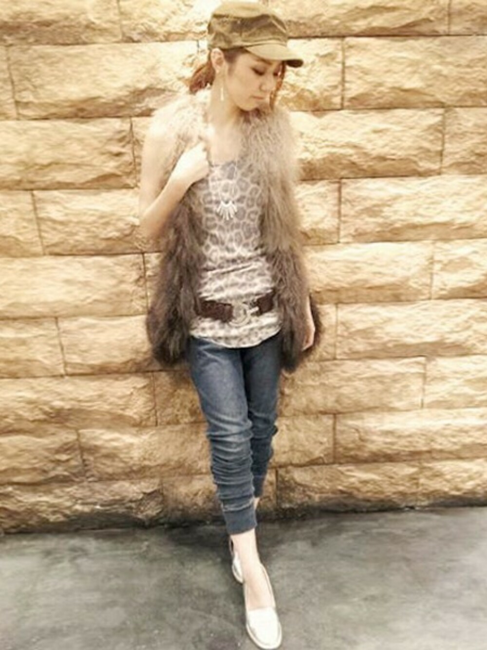 ボリューミーなリアルチベットファーベストで秋らしさをプラスしました! ファーベストは一枚あれば色々なコーディネートのアクセントになるので、オススメです☆