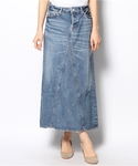 デニムロングスカートのシンプルなカジュアルコーデ☆ 秋の先取りとして、落ち着いたトーンのチェックシャツを取り入れました! まだまだ暑い日が続くけど、少しずつ秋の気配を取り入れたい方にお勧めです。