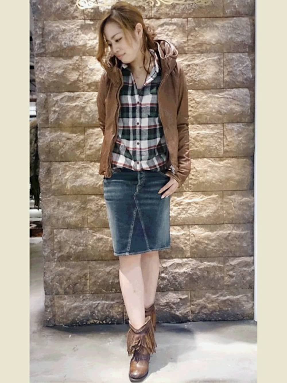 長く着用できるシンプルなスタイルは、さりげなく人と差のつくアイテムがオススメです。 襟周りのボリュームが顔まわりをすっきり見せるビックフードのレザーブルゾンは、中にフードもある優れもの! 差し色に着用したチェックシャツはボトムにinすると大人な印象です☆